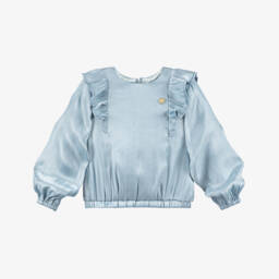 Eye-catching, glittery gold blouse for girls by Le Chic, with elasticated and frilled trims. Made in stretchy, pleated chiffon with a leopard print, it has a cotton jersey lining for comfort. The designer's gold heart logo and ribbon are on the chest, and it is easy to wear, simply pulling on.