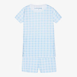 Pale pink and white short pyjamas for girls in traditional gingham by Magnolia Baby, made in super soft and comfortable Pima cotton jersey. They are snug fitting and have a gently elasticated waist on the shorts, just right for little tummies.
