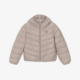 Ideal for cooler weather, this black puffer jacket for girls by Mayoral, is warmly padded with a soft polar fleece lining. Designed with a chevron pattern, it has an elasticated hem and a drawstring hood for extra cosiness. There are useful pockets on the front and a rubberised logo patch on the chest for a signature finish.