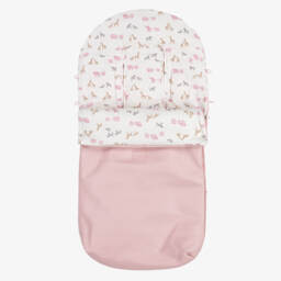 This blue faux leather footmuff by Mayoral is a versatile and stylish addition to any stroller. It showcases a playful safari animal print on the soft, padded fabric inside, ensuring comfort and warmth. The footmuff features a front zip for easy access and adjustable straps to secure it in place.