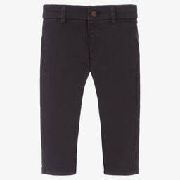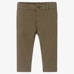 Slim fit red chinos for little boys by Mayoral, made in soft cotton twill. With four pockets and a logo tab on the back, this bold style fastens with a button and has a useful adjustable waist. They are made using sustainable cotton.