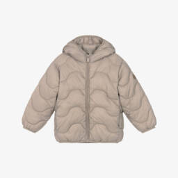 This beige hooded jacket for little girls by Mayoral, offers warmth and style for the cooler months. Quilted in an eye-catching wave design, it is softly padded and lined for comfort. The full-length zip fastening and elasticated trims help keep the warmth in, and there are concealed pockets on the front seams.
