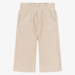 These ivory trousers for little girls by Mayoral, are made in soft, fine cotton needlecord. They have a slight stretch for comfort and an elasticated waistband for easy wear. The patch pockets on the front add a stylish finishing touch.