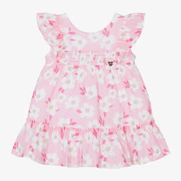 The girls blue floral cotton dress by Mayoral features flutter sleeves and a charming floral pattern. Made and lined with soft, lightweight cotton, the dress is designed with a frill hem and sweet ruffles across the bodice, adding a playful touch. The shirred panel and subtle heart-shaped logo charm enhance its appeal. With a hidden back zip fastening, it's perfect for easy wear. Limited quantities available, so last chance to buy this delightful piece.