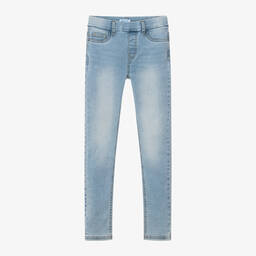 Girls blue skinny denim jeggings by Mayoral offer casual comfort in a soft, stretchy cotton blend. Featuring an adjustable elasticated waist for an ideal fit, these jeggings have faux front pockets and functional back pockets with a subtle jacron logo patch for a designer touch. Perfect for everyday wear, these denim jeggings are a stylish and practical choice. Limited quantities available, so it's your last chance to buy!