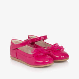 These charming white patent shoes for girls by Mayoral are perfect for special occasions. Crafted from smooth faux patent leather, they feature a delicate organza ruffle over the toes for an added touch of elegance. The shoes fasten easily with a velcro strap, offering a secure fit. Lined with soft leather, they ensure comfort, while the non-slip rubber sole provides safety and stability. Limited quantities available, so don't miss out on this stylish addition to any wardrobe.