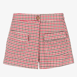 Pretty green and grey skort for girls by Mayoral, woven in a comfortable viscose blend. It has a lovely houndstooth pattern, front pockets and a useful adjustable waist to alter as your child grows.