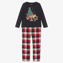 Cosy and comfortable for bedtime, these ivory cotton pyjamas for girls are by Mayoral. The long-sleeved jersey T-shirt has cuddly bears printed on the front, with 'family time' printed above. The love heart patterned trousers are super soft with an elasticated waistband. These pyjamas come with a matching drawstring pouch for neat storage.