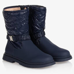 Girls dusky pink boots by Mayoral, with water repellent properties for rainy days. The cool uppers have a brushed leather bottom and silky nylon top half. They fasten on one side with a branded zip and velcro, allowing for a secure fit. The textile lining keeps feet comfortable and warmth, whilst the outer sole has deep treads, for added grip.