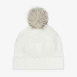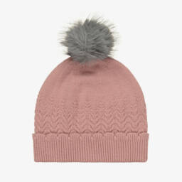 Girls cable knit hat in a soft pink hue by Mayoral features a charming grey pom-pom, offering both style and warmth for the cooler months. The intricate cable knit design provides texture and elegance, while the ribbed cuff ensures a snug fit. Perfect for autumn and winter outings, this cosy hat is a must-have accessory. Limited quantities available, making it the perfect time to add this delightful piece to your collection.