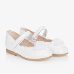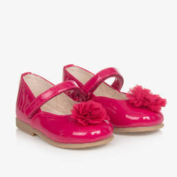Girls pink patent flower pumps by Mayoral are crafted from smooth and glossy faux leather. These charming pumps feature a delicate fabric flower on the front and an embossed logo on the velcro fastening strap. The soft leather lining and lightly padded insoles ensure comfort, while the non-slip rubber outer soles provide excellent grip. Limited quantities available, making it the last chance to buy this stylish and practical footwear.