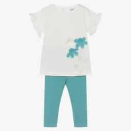 Ivory and gold floral leggings set for girls by Mayoral features a delightful combination of style and comfort. The soft jersey top is adorned with a charming flower print and a delicate 3D tulle butterfly, making it perfect for spring and summer outings. The coordinating leggings boast a gold metallic finish, adding a touch of sparkle. Limited quantities available, so secure this adorable ensemble for your young one while stocks last.