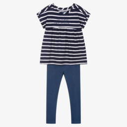Girls red and blue jeggings set by Mayoral, made with soft and stretchy jersey. The red and white striped cotton T-shirt has navy blue decorative buttons on the shoulders, fixed turn-up cuffs and embroidered, 'Sparkle Like Glitter' lettering on the front. Designed to appear as denim, the blue leggings have a comfortable stretchy waist.