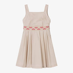 Girls red cotton embroidered dress by Mayoral is crafted from a beautifully soft and lightweight cotton blend. This sleeveless design features ivory floral embroidery with shimmering gold thread on the waistband and a stylish cut-out design on the back. The full skirt is lightly pleated and fastens neatly with a concealed zip on one side. Limited quantities available, perfect for a summer event.