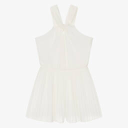 Girls pink halter playsuit by Mayoral features a lightweight crêpe fabric, offering a graceful drape and stylish appeal. The halter neck design complements the pleated shorts, while an elasticated waist ensures comfort and ease of movement. Ideal for spring and summer occasions, this piece combines elegance with practicality. With limited quantities available, it's a last chance to add a touch of sophistication to any wardrobe.