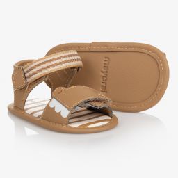 Cute green pre-walker sandals for baby boys, by Mayoral Newborn. Made in soft faux leather, they have an adorable crocodile print on the front strap, and an additional velcro strap fastening around the ankle for a secure fit.