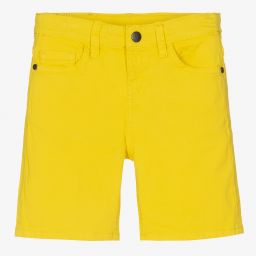 Red Bermuda shorts for boys by Mayoral, made in stretchy cotton twill. In a five pocket style, they have a useful adjustable waist with popper fastening. There are branded rivets and logo details on the back.