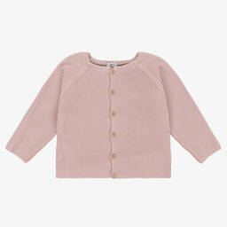 Light beige cardigan for boys and girls by Mebi, finely knitted in beautifully soft cotton. Lovely for layering, it fastens with wooden buttons on the front and has cable knit trims. Mebi is a very small fitting brand, please choose a size up to allow room to grow.