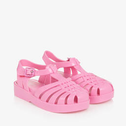 Girls ivory and pearlescent blue jelly sandals by Mini Melissa offer a charming addition to any younger girl's wardrobe. Made with Mini Melissa's signature sweet-scented Melflex, these sandals are both flexible and comfortable. The woven effect closed toe and easy Velcro fastening with faux buckle detail ensure a secure fit. The cushioned insole and non-slip outer sole provide added comfort and safety. Last chance to buy with limited quantities available.
