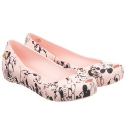 Girls white jelly shoes with a cute Mickey and Minnie Mouse print by Mini Melissa. In a slip-on style with peep-toes, they are made in soft PVC with the designer's signature sweet scent. The cushioned footbed is comfortable and flexible, and they have a non-slip outer sole.
