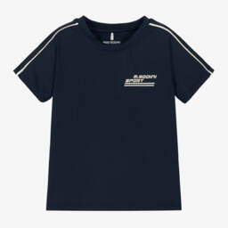 The boys black sporty quick-dry tee by Mini Rodini is crafted from silky smooth, stretchy jersey with distinctive ivory shoulder trims. Its breathable, fast-drying fabric offers comfort on active days. A stylish logo on the chest adds a touch of brand flair. Last chance to buy this great choice, suitable for keeping cool and dry during play.