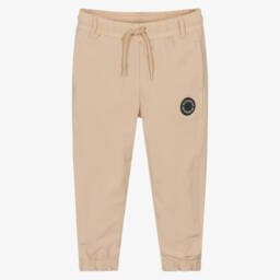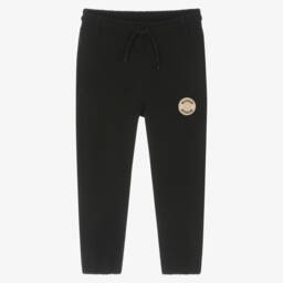 Black joggers for boys by Mitch & Son, made in lightweight nylon. For a casual and comfortable fit, they have a soft jersey lining and an elasticated drawstring waistband. There are useful pockets on the front and a rubberised circular logo patch for a signature finish.