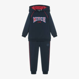 Красный спортивный костюм для мальчиков от Mitch & Son, вдохновленный спортивным, университетским стилем. Изготовлен из мягкого хлопкового трикотажа для комфортной носки, худи украшен вышитым логотипом и темно-синими кантиками. Брюки с манжетами и эластичным поясом на шнурке завершают повседневный образ.