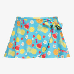 The girls pink beach skirt by Mitty James is a charming cover-up, suitable for wearing over swimwear for extra coverage by the pool or beach. Crafted from silky smooth, stretchy UPF 50+ fabric, it features a fixed bow and embroidered logo for a touch of elegance. With an elasticated waist, it offers easy wear and a comfortable fit. Limited quantities available, making it a must-have for sunny adventures.