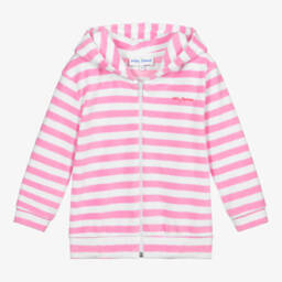 Exclusive to Childrensalon, a pink zip-up hoodie for girls by Mitty James. Ideal for the beach or poolside, it is made in lightweight, absorbent cotton towelling with ribbed trims. The brand's logo is embroidered in contrasting pink on one side.