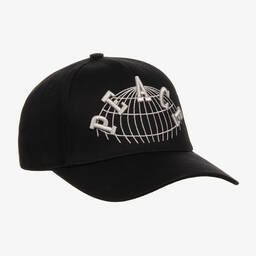 The boys black cotton fire cap by Molo is crafted in soft twill for ultimate comfort. This stylish cap features a bold 'On Fire' embroidered motif on the front in white, adding a touch of edge. It is completed with a grid logo tab and an adjustable velcro strap at the back. Ideal for casual outings, this cap is available in limited quantities, making it your last chance to buy this unique piece.