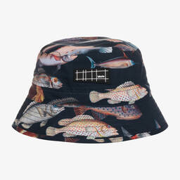 Fusing style and sun protective qualities, this yellow and blue hat for boys by Molo, provides UPF50+ protection. Made from recycled Repreve® fabric, it has a soft mesh lining and bold tie dye printed outer.