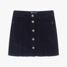 The girls blue button-up skirt by Molo combines classic style with modern functionality. Crafted from pure cotton, the skirt features a charming corduroy texture and a line of metallic buttons down the front for easy fastening. With practical front pockets and an adjustable waistband, it ensures a comfortable fit for active days. Perfect for autumn and winter wear, this piece is ideal for layering and brings a touch of elegance to any outfit. Limited quantities available—don't miss out!