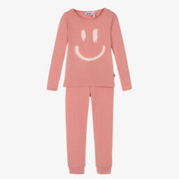 Girls pastel smiley pyjama set by Molo offers a delightful blend of comfort and style. Crafted from a soft organic cotton and elastane mix, this nightwear features a charming smiley face design on a gentle pink backdrop. Ideal for cosy nights, its snug fit ensures warmth during cooler months. Last chance to buy this enchanting set, perfect for adding a touch of joy to bedtime routines.