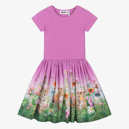 The girls yellow butterfly cotton dress by Molo features a soft, ribbed organic cotton bodice and a lightweight poplin skirt. The delightful floral butterfly design adds a playful touch, perfect for spring and summer adventures. With limited quantities available, this charming knee-length dress is a must-have addition to any wardrobe.