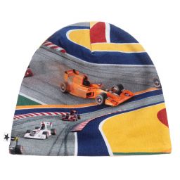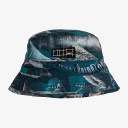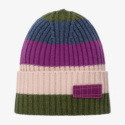 Green and black checked hat for boys and girls by Molo, made in a soft brushed wool blend. It has a stiff peak to protect the eyes and a flap on the back to keep ears and necks warm. There is a small black and white logo tab on one side for a discreet designer finish.
