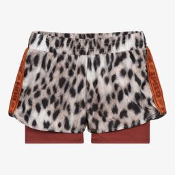 Workout in style with these activewear shorts for teen girls by Molo. They have a brown and blue floral print, with attached light pink cycling shorts underneath, and logo tape on the sides. The silky and lightweight fabric has Heiq Smart Temp technology that reacts to body temperature and sweat to keep you cool and comfortable.