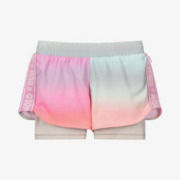 Combining sports with fashion, and using recycled materials, these activewear shorts for teen girls are by Molo. The silky soft outer shorts are in a brown and beige giraffe print, trimmed with lilac pink logo tape down on the sides. The beige inner shorts are made in technical jersey using HeiQ Smart Temp, which supports the body's own ability to cool down, ensuring optimal comfort. The waist is elasticated for a good fit and easy pull on. A branded tab on the side seam adds a finishing designer touch.