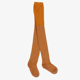 Ideal for jazzing up an outfit, a pair of sparkly, dusky pink tights by Molo for teen girls, with a pink logo on the soles. Soft and stretchy, they are knitted in a soft cotton blend and have a stretchy ribbed waistband.