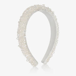 Orange hairband for girls by Italian designer Monnalisa, beautifully decorated with sparkling orange crystal beads. The wide, padded velvet band is flexible for a comfortable fit.