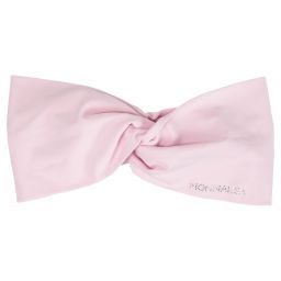Girls red headband from Monnalisa, made in soft and stretchy cotton jersey. It has a pretty knot on the top and the designer's name in sparkly diamanté at the side.