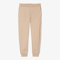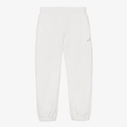 Pretty red cotton joggers for little girls by Italian designer Monnalisa. They have embroidered butterflies and a pink logo on the waist, with fun frills on the legs. Made in stretchy jersey with a fleecy inside for all-day comfort and warmth, they have ribbed trims for extra cosiness.