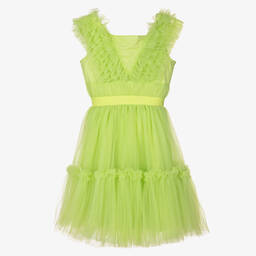 The teen girls purple tulle dress by Monnalisa is an exquisite choice for special occasions. Crafted with layers of fine tulle, the dress features a fitted bodice adorned with luxurious ruffles and an embroidered waistband. The voluminous skirt and soft cotton lining ensure comfort and style, with a concealed zip for a seamless finish. Limited quantities available, so do not miss the last chance to buy this stunning piece.