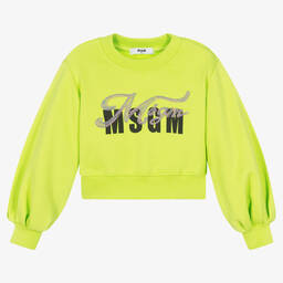 Girls ivory colourblock cotton top by MSGM offers a stylish blend of colour and comfort. Crafted from soft, mid-weight cotton jersey, this sweatshirt features vibrant pink and green sleeves with relaxed dropped shoulder seams. The black ribbed collar is accented with striking green stripes, matching the varsity-inspired 'cheer' print. An embroidered logo adds a touch of elegance. Limited quantities available, making it a unique addition to any wardrobe.