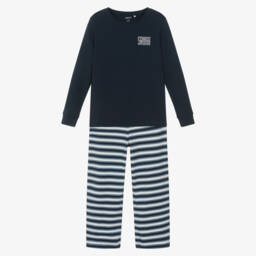 Comfortable green pyjamas for older boys by NAME IT, made in soft cotton jersey. The long-sleeved top has a cool 'Dream Zone' slogan on the chest and one sleeve. The striped bottoms have a gently elasticated waist for a snug fit and matching slogan detail.