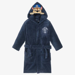 Уютный синий халат для маленьких мальчиков от NAME IT с тонкими черными полосками. Изготовлен из невероятно мягкого плюша, с капюшоном и удобными карманами, застегивается на молнию и имеет фиксированный пояс.