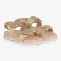 Sparkly silver glitter leather sandals for girls from Naturino. The flexible leather uppers fasten with velcro around the ankle and across the foot for a secure fit. For improved grip on slippery surfaces the outer soles are made in textured non-slip rubber.