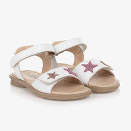 Girls pink sandals by Australian brand Old Soles, made in soft and supple leather. With an open-toe design, the velcro fastening front strap is trimmed with gold star appliqués, with a further velcro strap at the ankle. They have a soft, padded leather insole with arch support and a flexible, non-slip rubber sole.