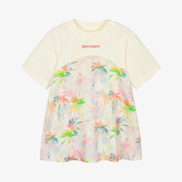 Girls milano knit hooded dress by Palm Angels, crafted in soft black jersey for a cosy feel. Featuring sporty beige and black taping on the sleeves and an elasticated waist, it offers a flared skirt for a playful touch. The white logo on the chest adds a designer flair. Suitable for cooler days, this dress combines comfort with style. Limited quantities available, so don't miss out on this elegant piece.