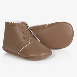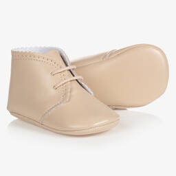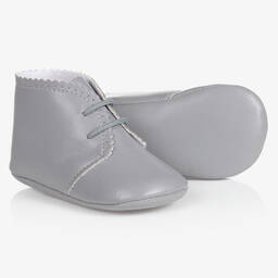 Navy blue lace-up baby shoes by Paz Rodriguez. Made in faux leather, they have a soft, felted cotton lining and perforated detailing, with a smooth outer sole.