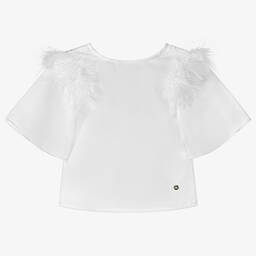 An ivory tulle trim blouse for girls by Piccola Speranza is crafted in soft, brushed cotton twill. This elegant piece features embroidered tulle trims, red velvet accents, and chic decorative buttons on the front. The pointed collar has sparkling red diamantés, adding a touch of sophistication. Fastened with mother-of-pearl buttons on the back, it’s a refined choice for special occasions. Limited quantities available, so don't miss your chance to buy this exquisite blouse.